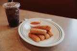 Deep fried cheese sticks. Crispy on the outside, gooey on the inside.