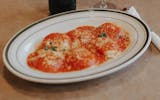 Stuffed ricotta cheese with tomato sauce and mozzarella melted on it.
